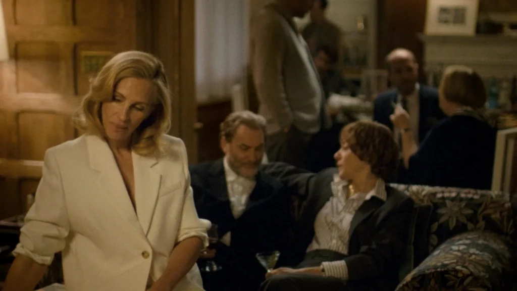 Falar sobre as performances do elenco também é indispensável. São três grandes atores em papéis que subvertem seus arquétipos no cinema. O charme de Andrew Garfield amarga com o temperamento desregulado de Hank, enquanto o inconformismo de Ayo Edebiri é colocado à prova por uma estudante acusada de plágio, fruto de uma adoção abastada e envolta por uma sociedade branca e elitizada. Contudo, Julia Roberts é quem mais se desafia neste projeto. Em entrevista, a atriz comentou sobre a estranheza e a complexidade de estar na pele de Alma. Sua interpretação abraça um retrato controverso: do narcisismo em ser amada pelo marido e reconhecer que não o merece, ao apego disfuncional a uma trágica paixão do passado. Quanto mais conhecemos Alma, menos confiamos em seu juízo e mais nos empatizamos com sua dor. Esse é o verdadeiro mérito da entrega de Roberts.