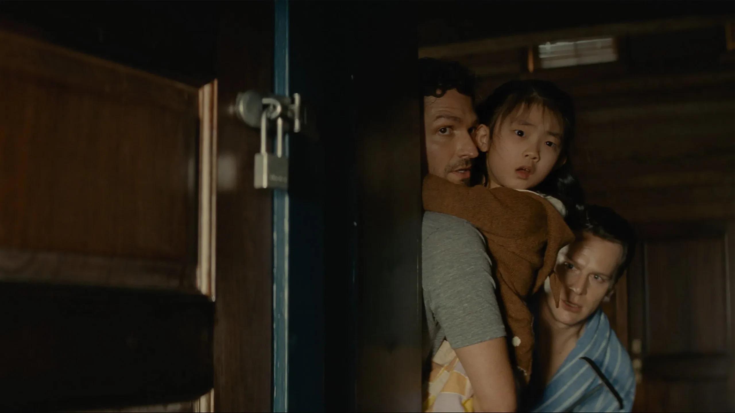 A decisão é um elemento essencial em Batem à Porta, tal qual foi no desfecho de Tempo, e a obrigação iminente de uma decisão que sustenta o elevado nível de tensão e curiosidade desse filme. E numa obra onde as escolhas são o que definem o findar de tudo, é muito interessante como o roteiro desenha o casal Eric (Jonathan Groff) e Andrew (Ben Aldridge) através de muita sutileza como duas pessoas completamente diferentes (belíssima a cena em que ambos apontam os defeitos um do outro), mas que se amam e se sentem dispostas a, á sua maneira, fazer o que for preciso por sua família. É aqui que a crença de cada também se torna um elemento essencial ao filme, com o ceticismo e a crença gradativa sendo muito bem representados nas personalidades e reações de cada personagem.
